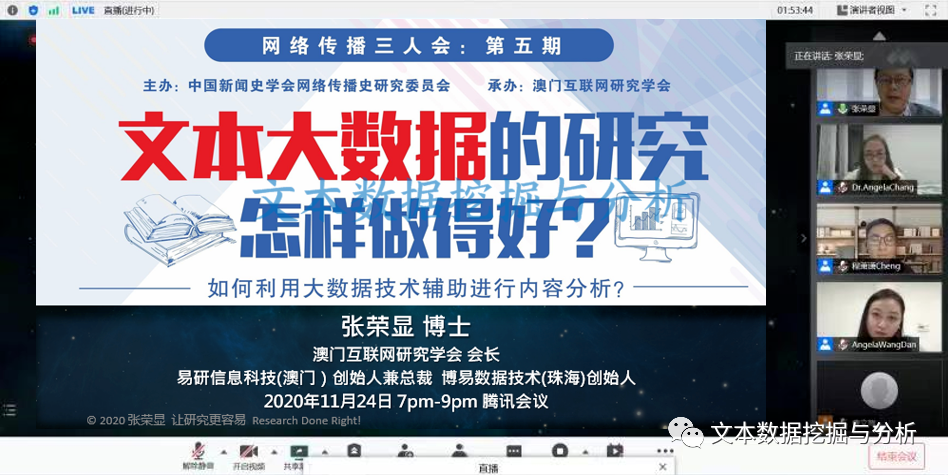 澳门互联网研究学会会长张荣显博士受邀出席 “网络联通中外,命运心手相连”线上会议,并带来了题为《海外重点智库的社交传播特点分析》的主题演讲。